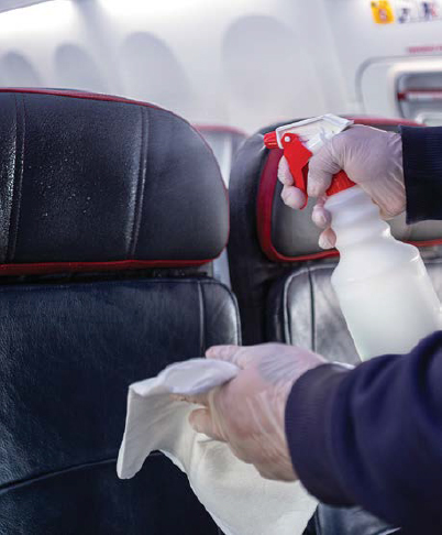 Cada día, los aviones son limpiados de forma profunda con un desinfectante aprobado por la Agencia de Protección Ambiental de EE. UU. Las áreas con las que pasajeros clientes y los miembros de su equipo tienen contacto frecuente son limpiadas antes de cada vuelo usando el mismo desinfectante.