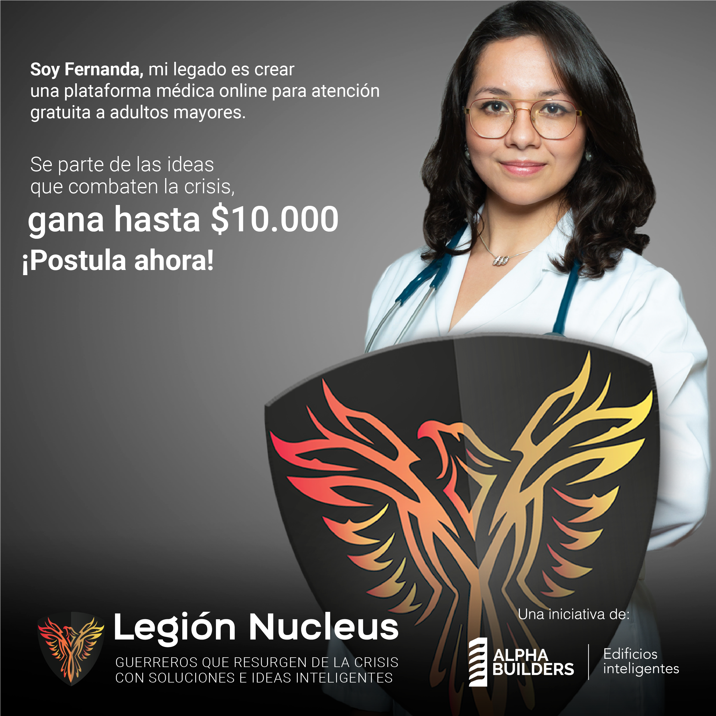 Alpha Builders tiene más de 10 años de experiencia en este tipo de iniciativas y desarrollo de ideas. Así lo respalda Paúl Lafuente, CEO de Alpha Builders, que impulsa el concurso “Legión Nucleus” en la búsqueda de las mentes más brillantes de Ecuador y Latinoamérica. De acuerdo con Paúl, Legión Nucleus ha nacido de la idea de encontrar soluciones rápidas y viables a los problemas generados por la pandemia del COVID-19.